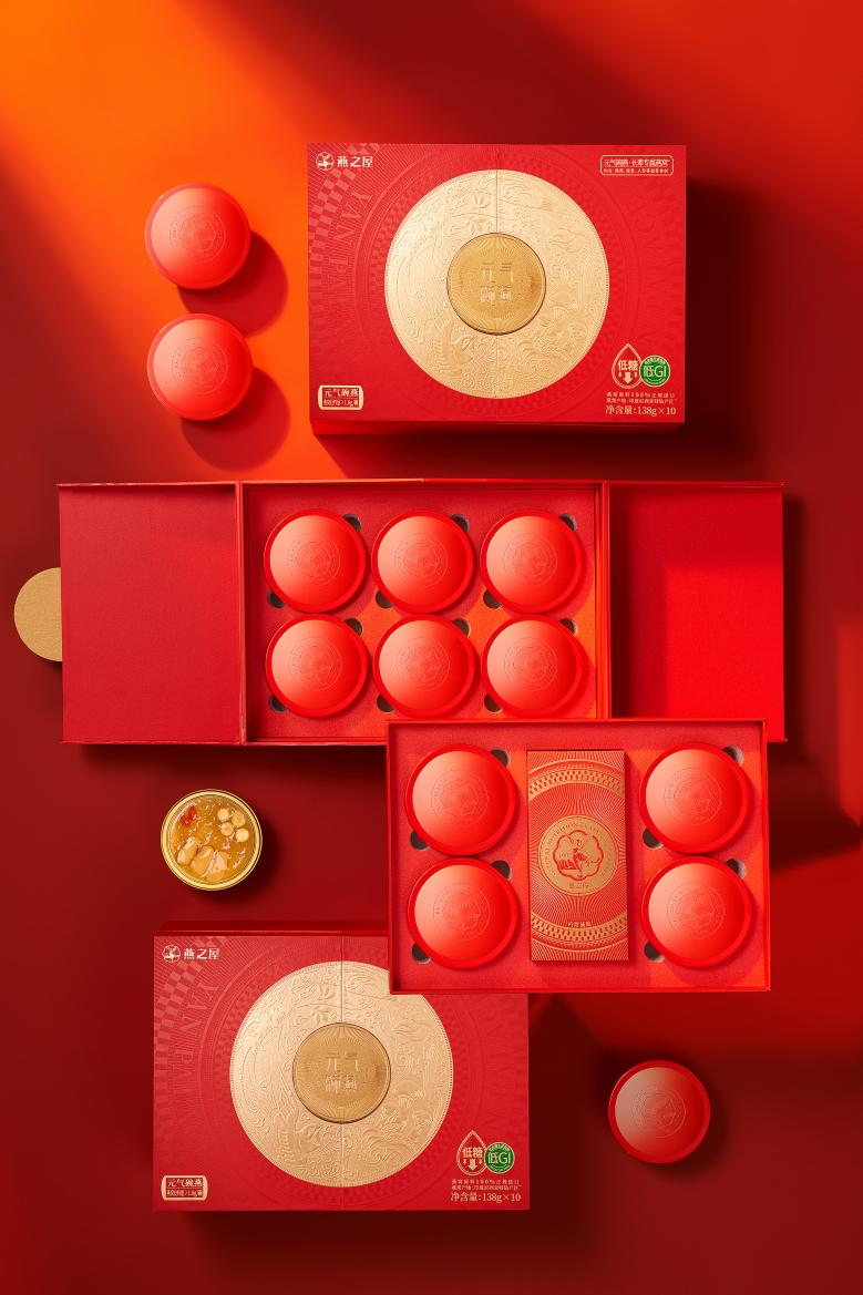 為長輩挑選滋補好禮,煥新升級的碗燕·元氣款禮盒實為優(yōu)先之選。中國紅與黃金色系的精美配搭,凸顯光亮色澤與尊貴質(zhì)感,大方得體,有禮有面。禮盒設(shè)計圍繞“圓”的概念,以年輪為設(shè)計意象,象征歲月賦予的智慧,也傳遞著圓滿之意。盒上刻畫金燕反哺動人圖景,祥云繁花環(huán)繞其中,蘊藏濃厚情意。獨特的對稱開盒頗具巧思與創(chuàng)意,內(nèi)里雙層設(shè)計,共承十碗珍饈碗燕·元氣款,滿載濃濃營養(yǎng)與深切關(guān)懷,讓滋補觸手可及,關(guān)愛無處不在。