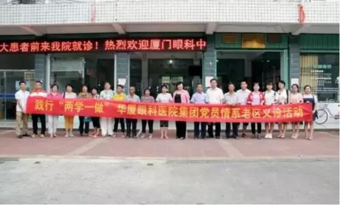 2016年6月25日,在紀念中國共產(chǎn)黨誕辰95周年之際,結(jié)合“兩學(xué)一做”,集團黨委開展“重走紅軍路,送醫(yī)到老區(qū)”活動。華廈眼科醫(yī)院集團黨委書記陳寶貴組織全體黨員到閩西革命老區(qū)龍巖連城新泉鎮(zhèn),慰問當?shù)匮奂怖щy戶,并為300多位眼疾患者做篩查,深受老區(qū)群眾贊譽;