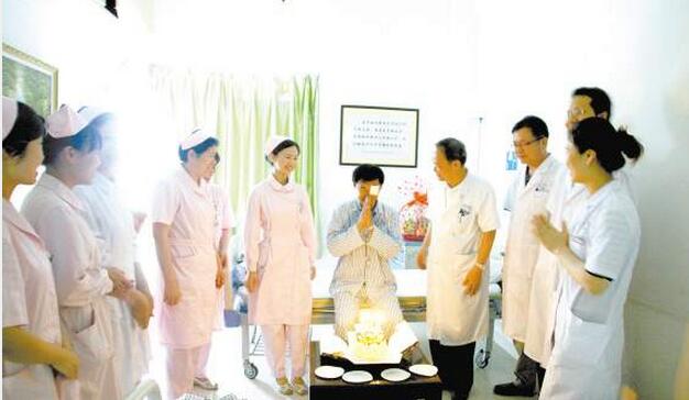 醫(yī)院充滿人文關懷,眼底病區(qū)醫(yī)護人員為患友過生日。