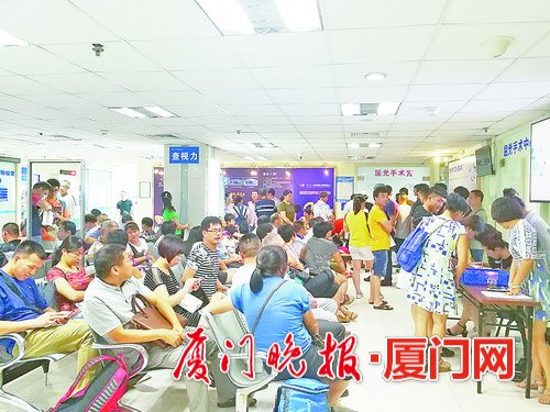 屈光手術(shù)中心大廳坐滿了等待手術(shù)的患者和家屬