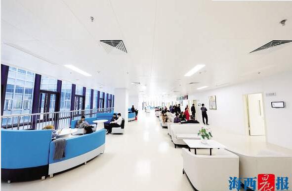 現(xiàn)代化的裝修、暖綠暖黃為主色調的環(huán)境讓人眼前一亮??剖议T診和住院樓層各種指引標識清晰明確,隨處可見溫馨提示,還有志愿導引人員。階梯形前臺,讓坐在輪椅上也能與醫(yī)務人員無障礙溝通。等候就診時,你可以在按摩椅上來一場放松之旅,也可以漫步VIP候診區(qū)長廊欣賞名畫。在休息區(qū),休閑吧和兒童游樂區(qū)等可以緩解診療時帶來的陌生感和緊張感。同時,五緣院區(qū)還配有超千個地面、地下停車位,方便“有車一族”到院泊車。