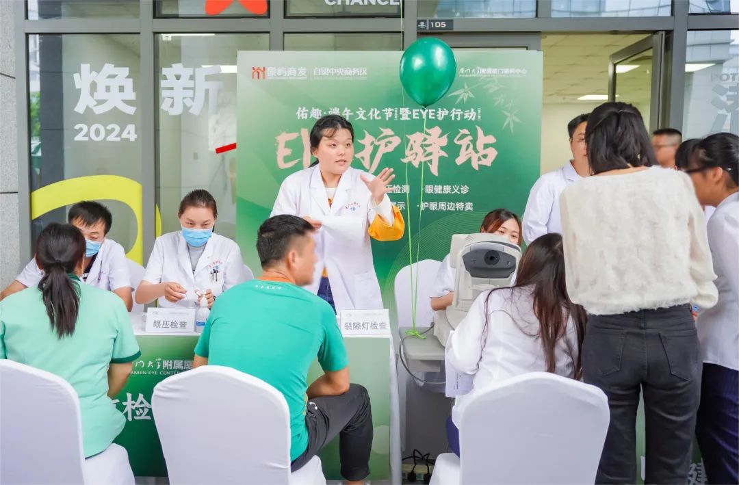 6月5日、7日,廈門(mén)眼科中心分別走進(jìn)象嶼商發(fā)旗下自貿(mào)中央商務(wù)區(qū)的金融中心及時(shí)代廣場(chǎng)兩地,為企業(yè)職工們帶來(lái)了眼病篩查、視力檢查、眼壓檢測(cè)和健康指導(dǎo)等專(zhuān)業(yè)的眼健康服務(wù),并廣泛普及宣傳了眼保健科學(xué)知識(shí)。