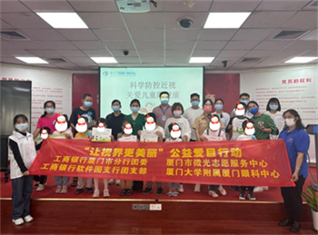 為進(jìn)一步強(qiáng)化近視防控工作,守護(hù)特需兒童的眼健康,讓孩子及家長(zhǎng)了解科學(xué)的護(hù)眼知識(shí),助力看見(jiàn)幸福未來(lái),近日,廈門(mén)大學(xué)附屬?gòu)B門(mén)眼科中心攜手工商銀行廈門(mén)市分行團(tuán)委、工商銀行軟件園支行團(tuán)支部及廈門(mén)市微光志愿服務(wù)中心,共同開(kāi)展了“讓視界更美麗”公益愛(ài)目活動(dòng),寓教于樂(lè)地為特需兒童及其家長(zhǎng)科普了護(hù)眼知識(shí),并為孩子們進(jìn)行了專業(yè)的眼健康檢查,守護(hù)睛彩世界,點(diǎn)亮健康明眸。