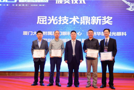 ▲ 燕振國(guó)教授為廈門(mén)眼科中心頒發(fā)“屈光技術(shù)鼎新獎(jiǎng)”