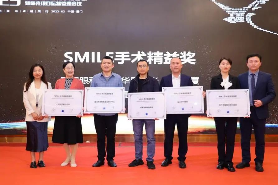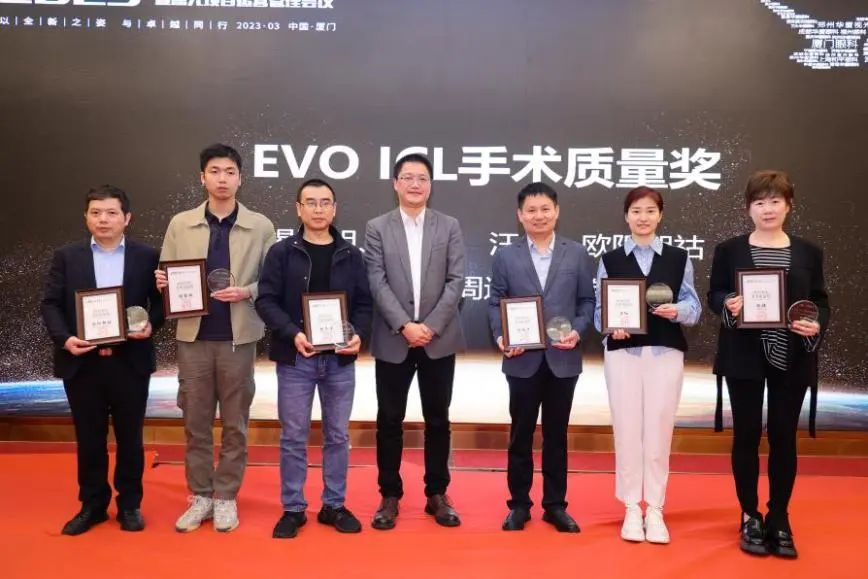 隨后,2022年度眼屈光學(xué)科各類優(yōu)秀獎(jiǎng)項(xiàng)進(jìn)行了同步表彰,廈門(mén)眼科中心獲得多項(xiàng)殊榮,其中包括“2022年屈光項(xiàng)目特別貢獻(xiàn)獎(jiǎng)”、“屈光技術(shù)鼎新獎(jiǎng)”、“蔡司屈光手術(shù)培訓(xùn)中心”、“EVO ICL培訓(xùn)中心”、“個(gè)性化微飛秒全球認(rèn)證屈光中心”、“SMILE手術(shù)精益獎(jiǎng)”、“全飛秒科普貢獻(xiàn)獎(jiǎng)”等授牌,屈光手術(shù)中心多位醫(yī)生被授予“EVO ICL手術(shù)質(zhì)量獎(jiǎng)”、“EVO ICL手術(shù)質(zhì)量卓越獎(jiǎng)” 。