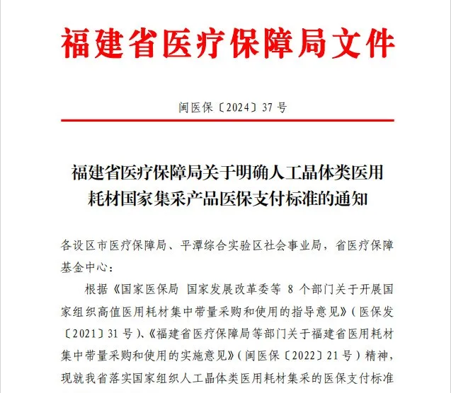 【文章導(dǎo)讀】好消息! 福建醫(yī)保局發(fā)布通知 第四輪國(guó)家組織 人工晶體類和運(yùn)動(dòng)醫(yī)學(xué)類醫(yī)用耗材 集中帶量采購(gòu)中選結(jié)果將落地執(zhí)行 廈門(mén)眼科中心積極響應(yīng)執(zhí)行 這意味著 老花眼與屈光白內(nèi)障患者 可