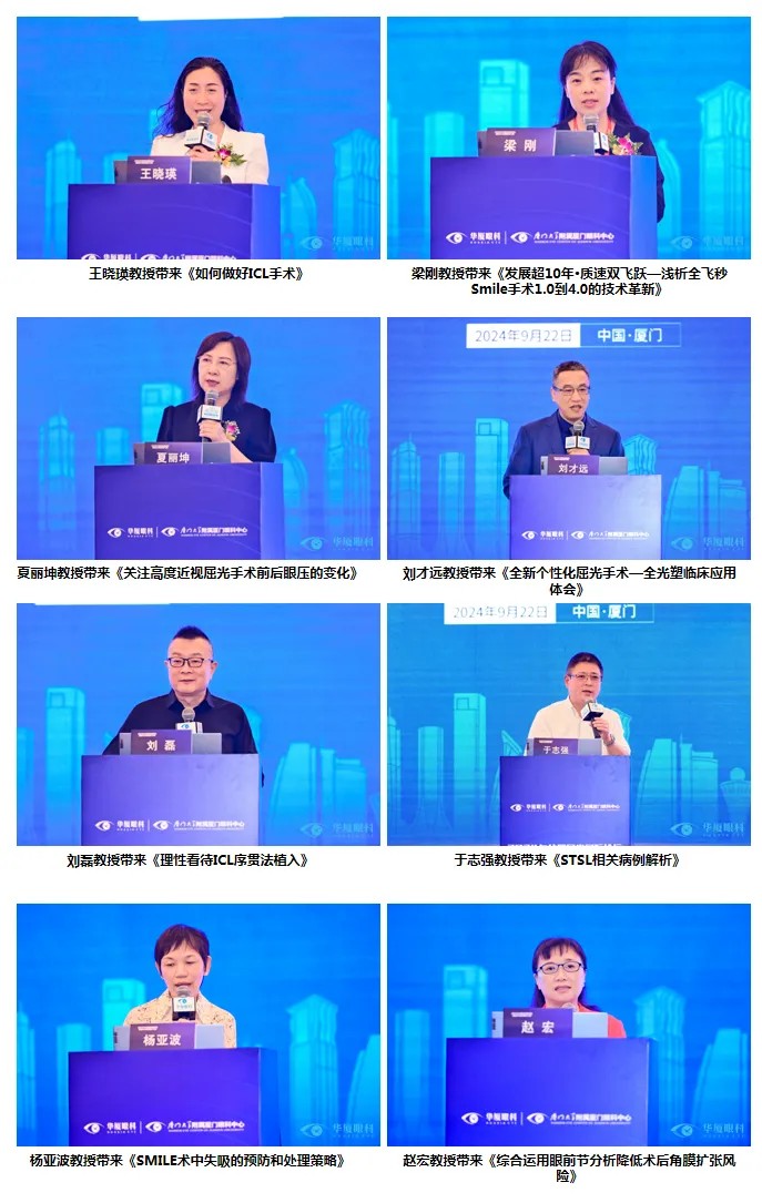 廈門眼科中心史小玲醫(yī)生、李瑞霞醫(yī)生和華廈眼科青年醫(yī)生們一起帶來ICL晶體植入主題的精彩演講,受到了與會專家們的一致稱贊。