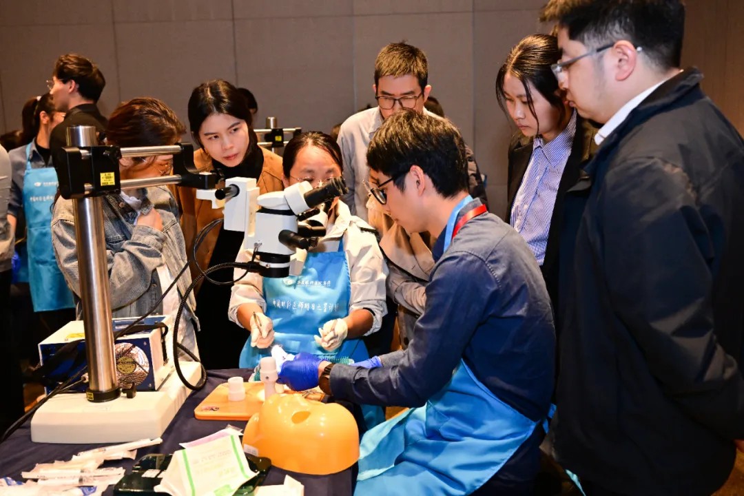 除學術環(huán)節(jié)外,本次論壇特別開設了斜視手術Wetlab實操培訓專場及手術錄像展播。廈門眼科中心斜視與小兒眼科的主任醫(yī)師謝仁藝,副主任醫(yī)師楊梅、何歡、王海燕為學員們一對一講解了斜視手術的操作要點、技巧,手把手指導學員在動物眼上實操,大大提升了學員們的斜視手術技能。