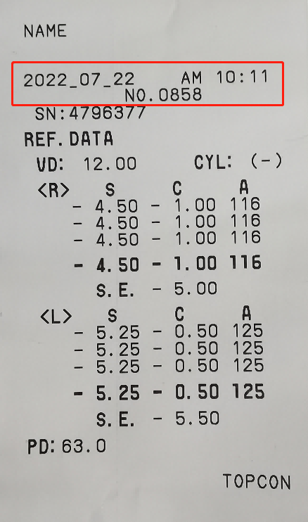 在驗光單開頭,有檢查的日期時間、編號信息