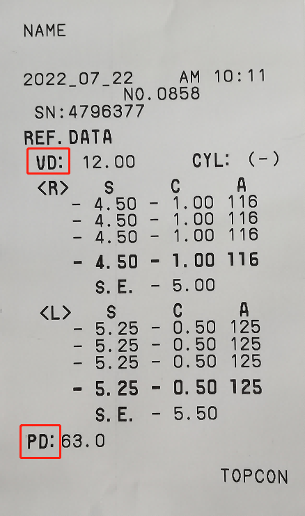 其他數(shù)據(jù):VD、PD“VD”是指鏡眼距,在視力檢查中,VD=12.00mm,即我們平常戴眼鏡時鏡片后頂點到眼球角膜前面的距離。